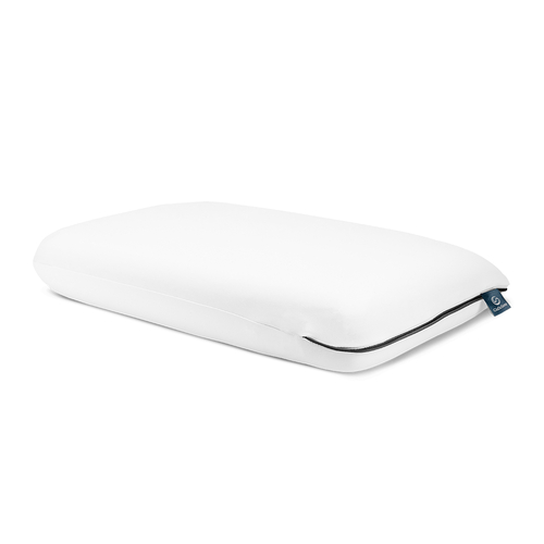 Travesseiro com três camadas de alto conforto e ajuste de altura, com espuma LÁTEX TOUCH, MEMORY FOAM e estrutura de suporte.